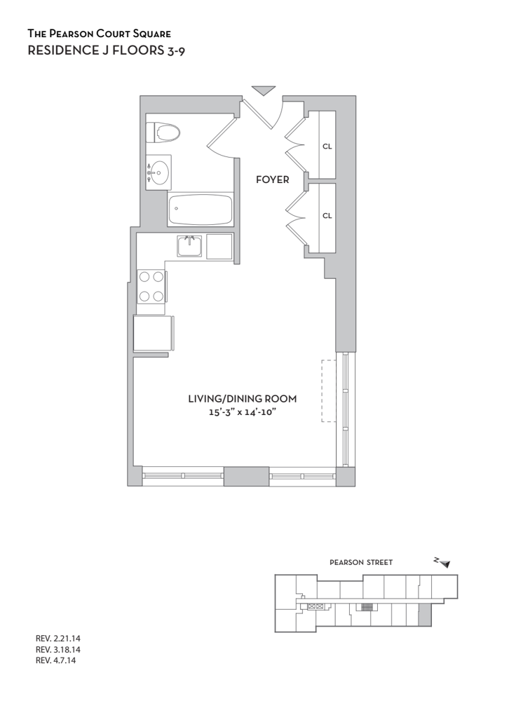 The development includes a new 14-story building with 197 rental apartments. The building includes a wide-range of unit types and sizes including studio, junior one bedroom, full one bedroom, two bedroom one bath, and two bedroom two bath units. The Pearson Court Square also features green and sustainability components as the project is LEED-Certification and certification through NYSERDA’s Multifamily Performance Program. Construction was completed in 2014.